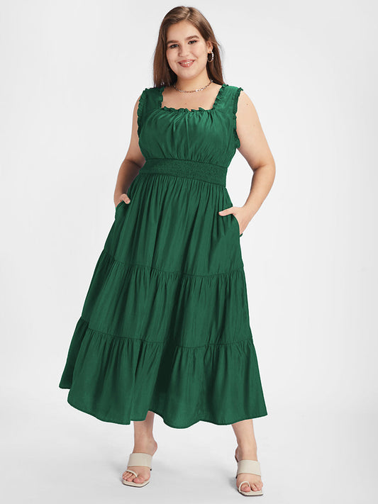 Plain Ruffle Tiered Smocked Waist Cami Dress
