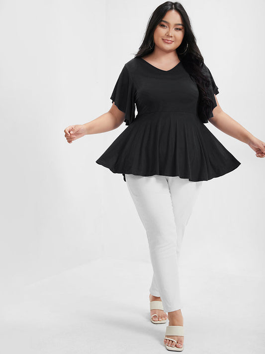 Plain Ruffles Babydoll V Neck T-shirt