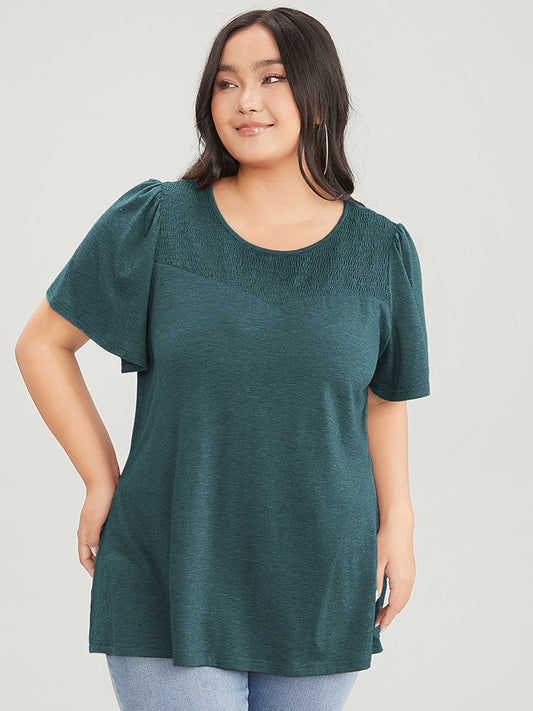 Plain Shirred Insert Ruffle Sleeve T-shirt