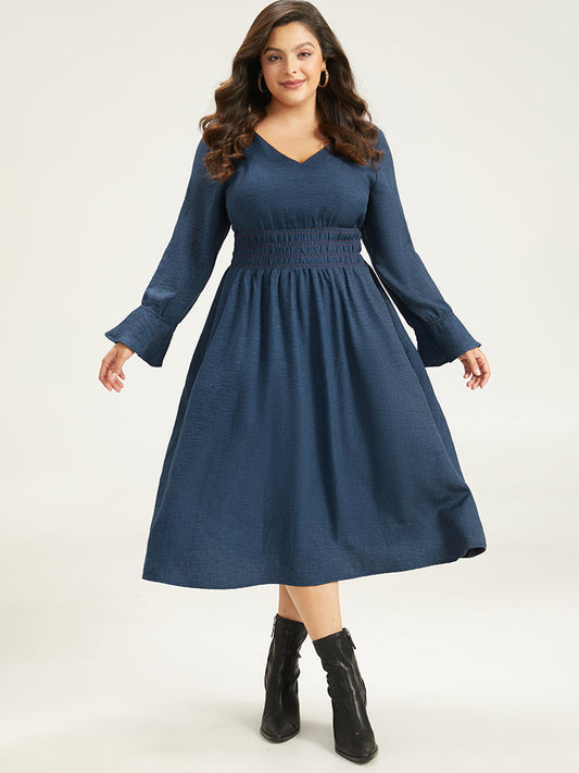 Plain Shirred Knot Neck Gathered Slit Hem Dress