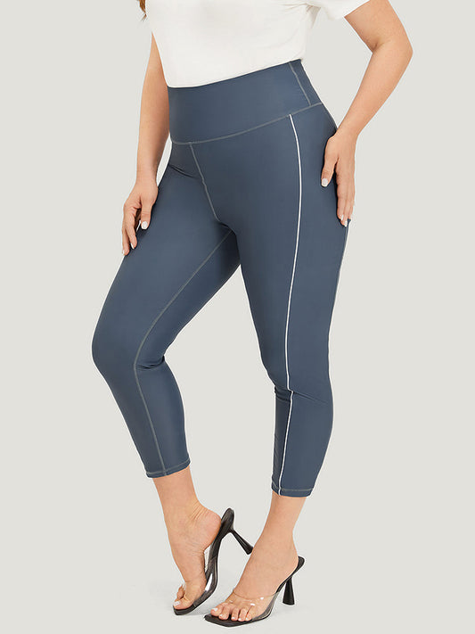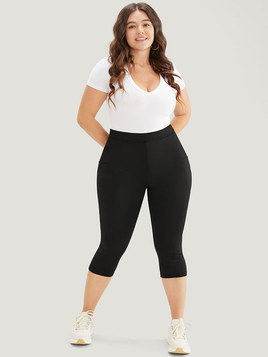 Plain Skinny Elastic Waist Scalloped Trim Shorts