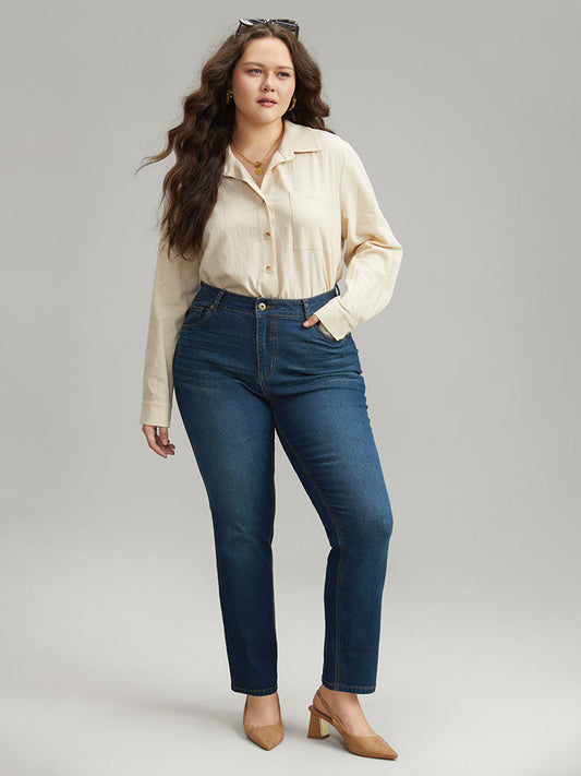 Plain Straight Leg Pocket High Rise Jeans