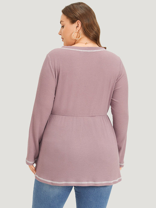 Plain Stitch Trim Notched Flutter Hem T-shirt