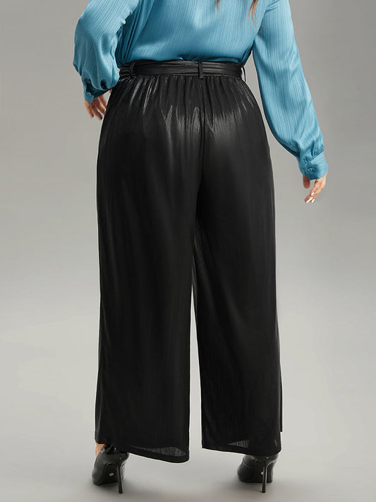 Plain Texture Belted High Rise Wide Leg Pants