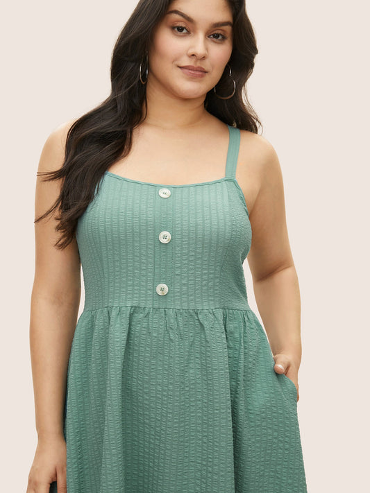 Plain Texture Button Detail Cami Dress