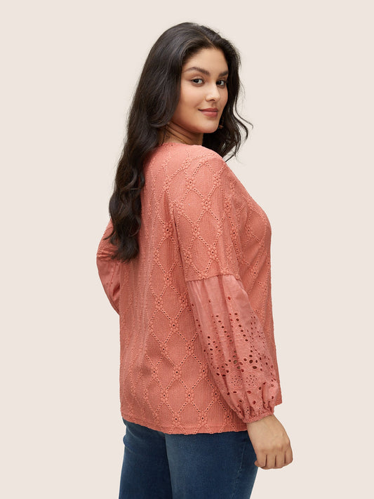 Plain Texture Broderie Anglaise Patchwork T-shirt