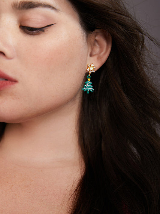 925 Silver Needle Snowflake Contrast Christmas Tree Earrings