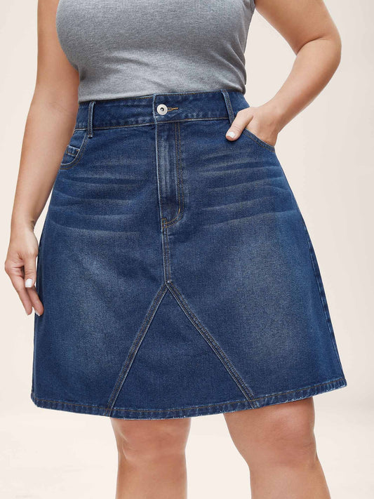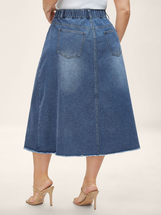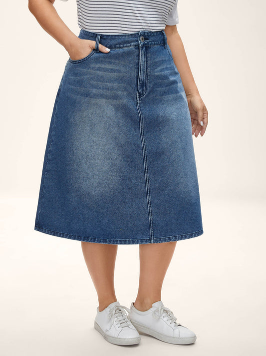 A-Line Pockets Midi Denim Skirt