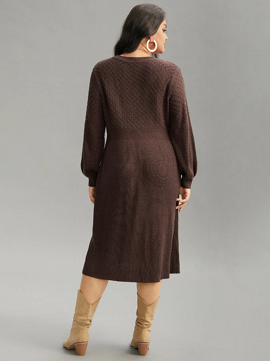 A Line Waistline Inside Lantern Sleeve Sweater Dress