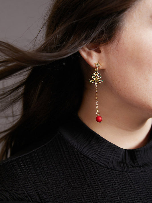 925 Silver Needle Star Christmas Tree Long & Short Earrings