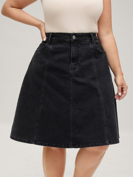 A-Line Midi Denim Skirt