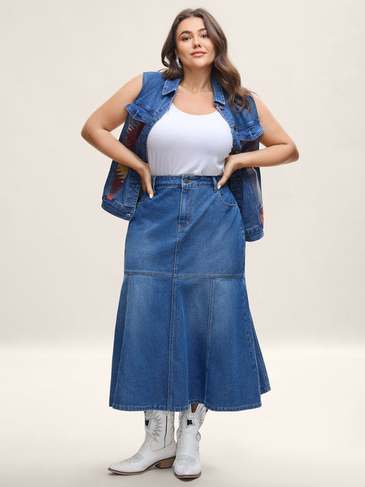 A-Line Seamed Maxi Denim Skirt