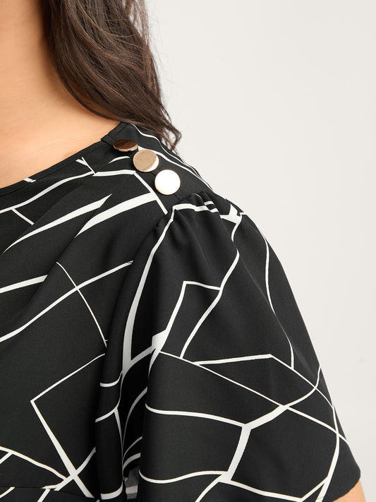 Abstract Detail Button Detail Blouse