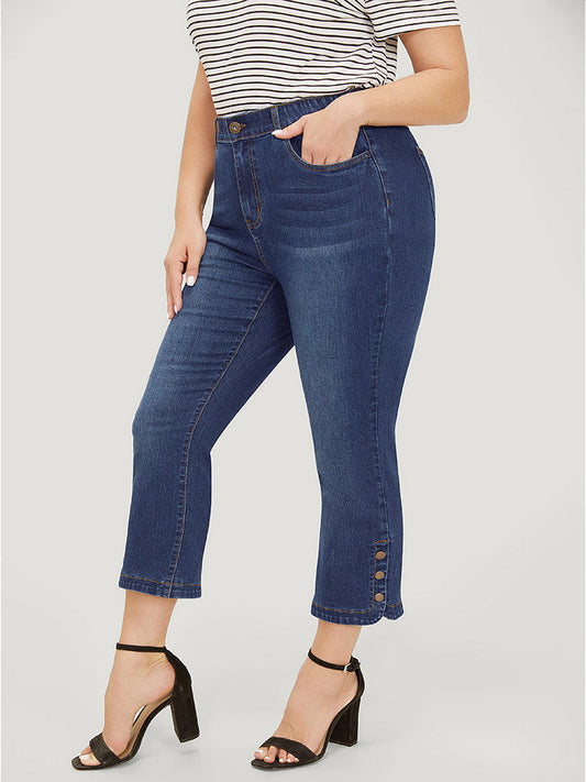 Bootcut Very Stretchy High Rise Dark Wash Button Side Jeans