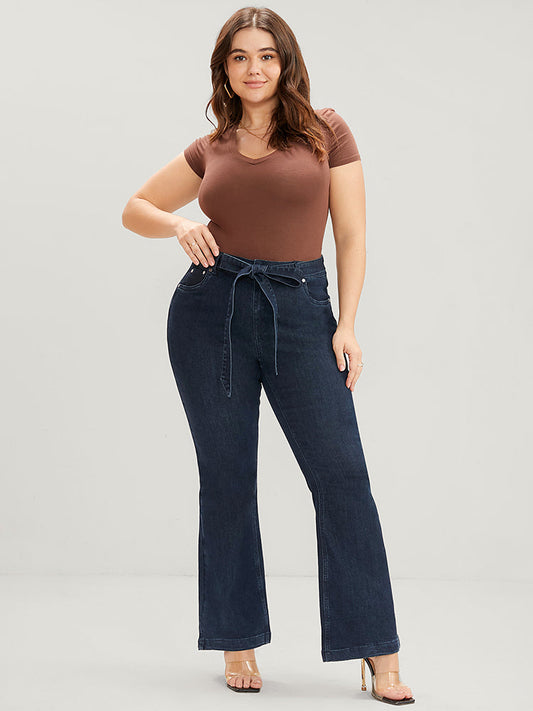 Bootcut Slightly Stretchy High Rise Dark Wash Belted Jeans