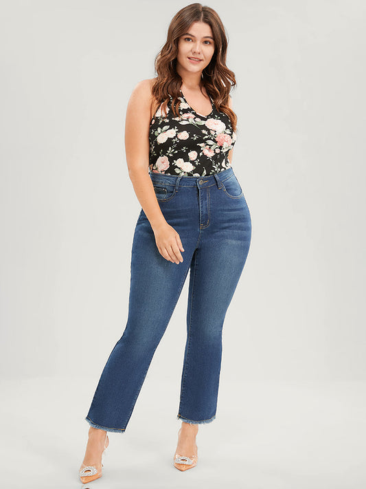 Bootcut Very Stretchy High Rise Dark Wash Fringe Detail Jeans