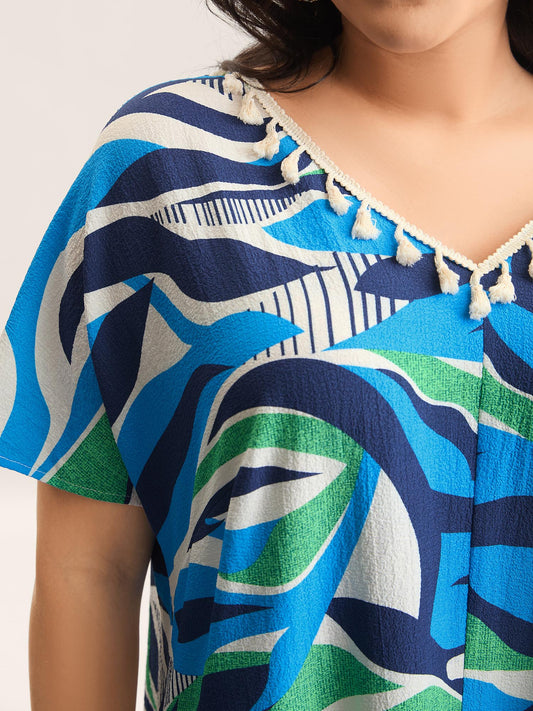 Abstract Pattern Petal Trim V-Neck Blouse