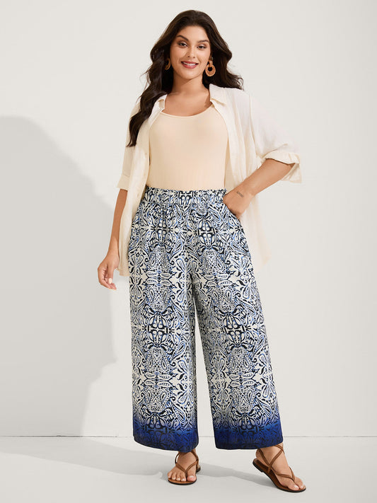 Abstract Pattern Wide-Leg Pockets Pants