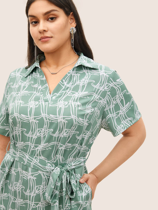 Abstract Print Belted Polo Collar Dress