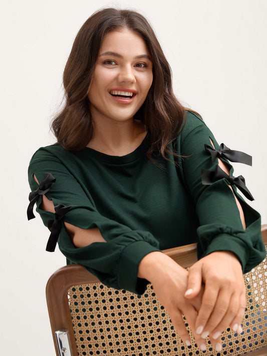 Bow-Knot Sleeve Cut-Out Sweatshirt