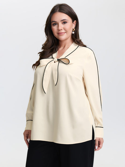 Bowknot Neckline Lace Trim Knee-Length Dress