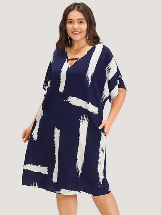 Brush Print Keyhole Pocket Dolman Sleeve Dress