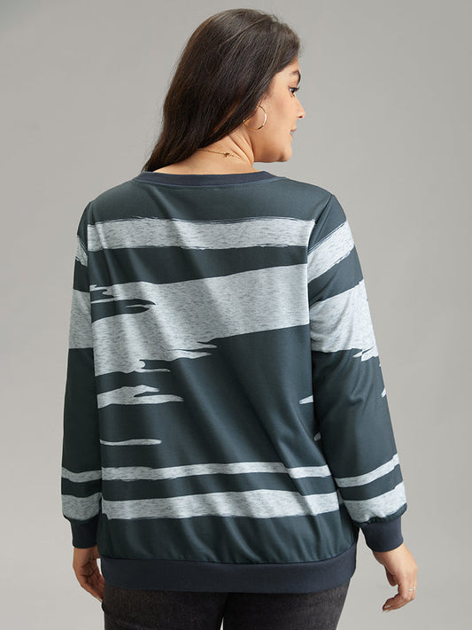 Brush Print Rib Knit Contrast Sweatshirt