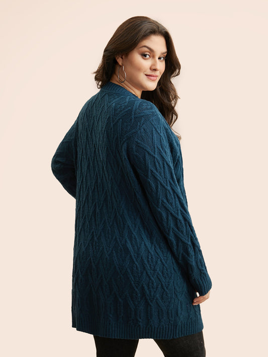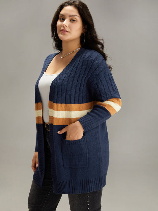 Cable Knit Colorblock Contrast Open Front Cardigan