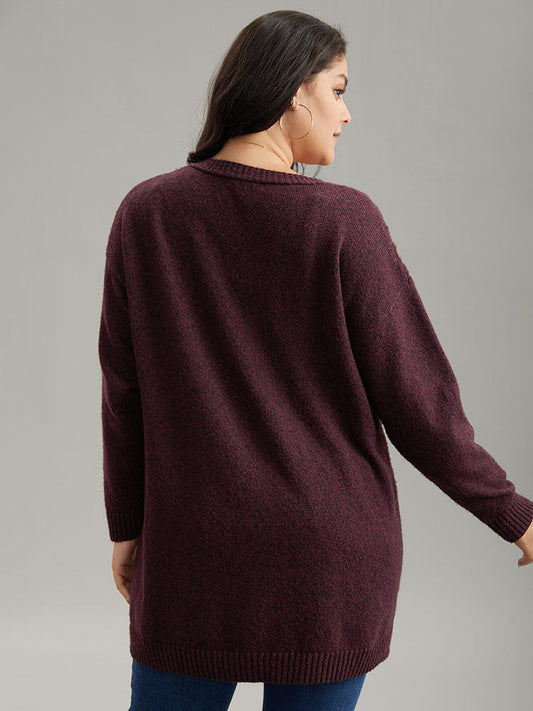 Cable Knit Dolman Sleeve Curved Hem Pullover