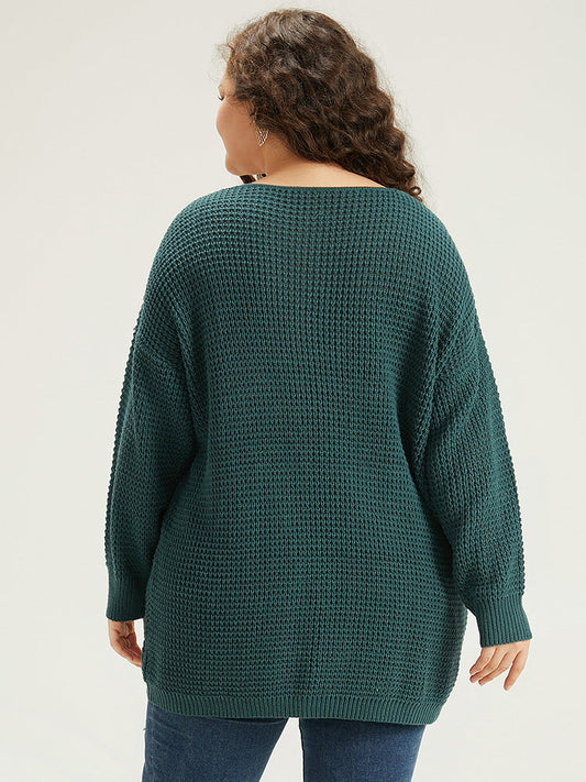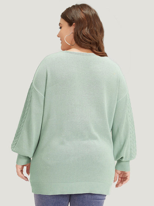 Cable Knit Lantern Sleeve Drop Shoulder Pullover