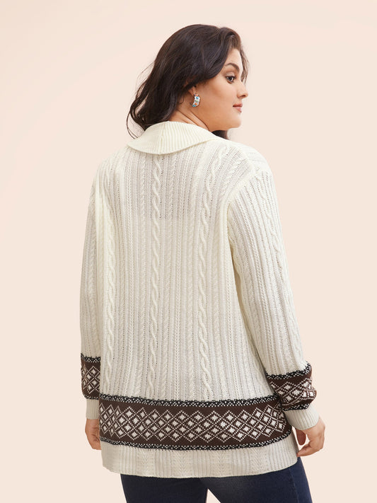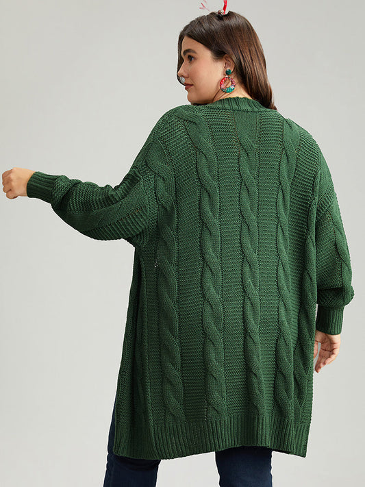 Cable Knit Ribbed Detailing Open Front Cardigan