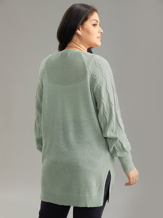 Cable Knit Raglan Sleeve Cut Out Pullover