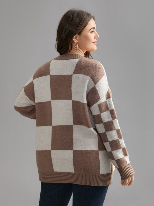 Checkered Relaxed-Fit Drop Shoulder Cardigan