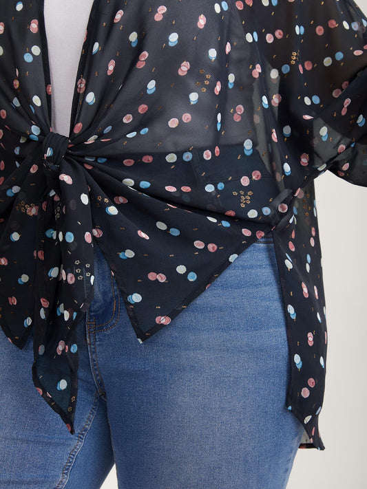 Chiffon Rhinestone Mesh Patchwork Elastic Waist Blouse