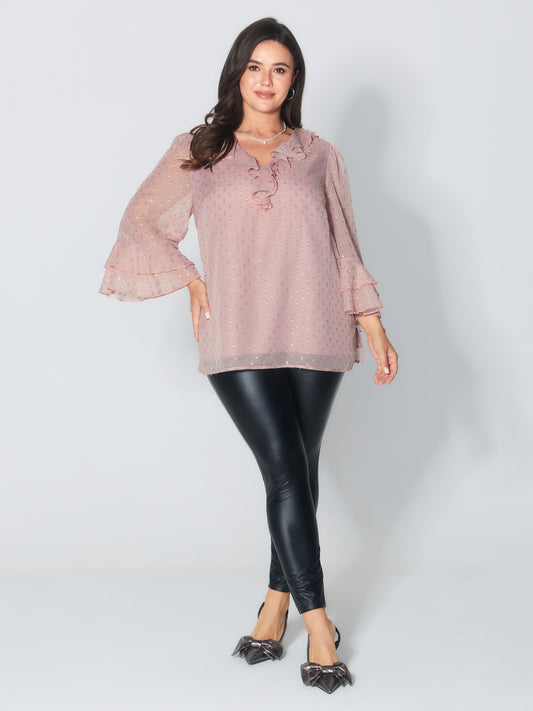 Chiffon Ruffled Neckline Layered Sleeve Blouse