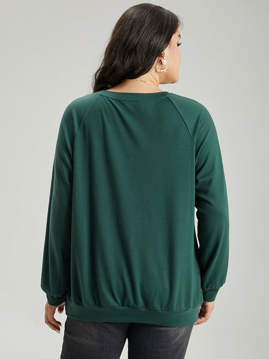 Christmas Elk Crew Neck Raglan Sleeve Sweatshirt