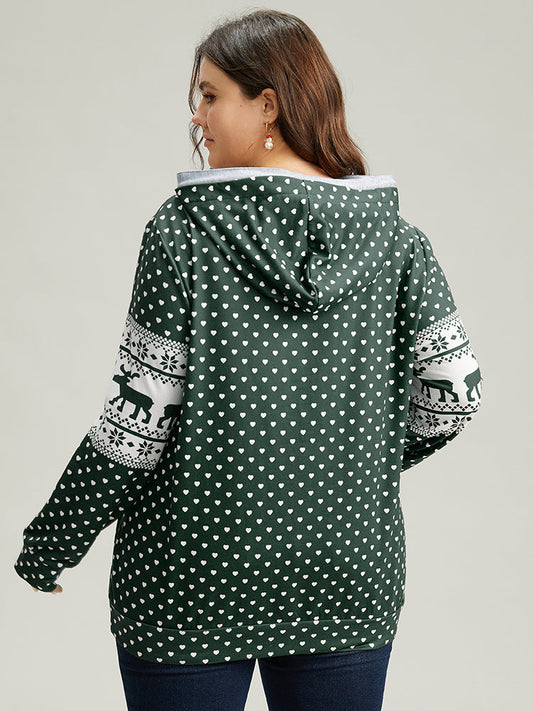 Christmas Elk Drawstring Pocket Sweatshirt