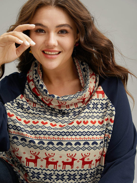 Christmas Graphic Turtle Neck Raglan Sleeve Sweatshirt