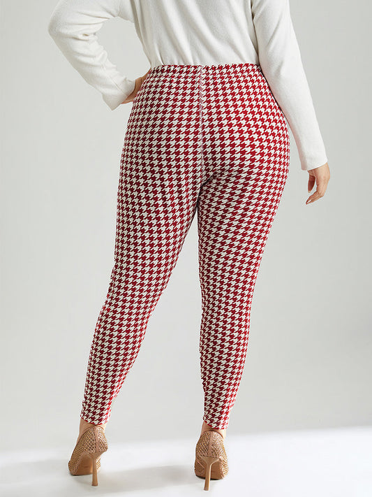 Christmas Houndstooth Elastic Waist High Rise Leggings
