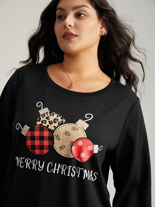 Christmas Graphic Sequin Elastic Cuffs Sweatshirt