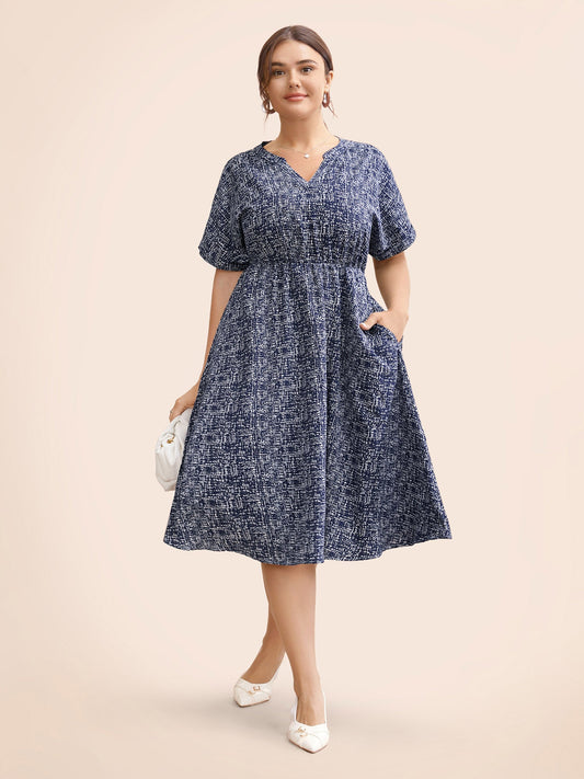 Allover Print Button Detail Batwing Sleeve Pocket Dress