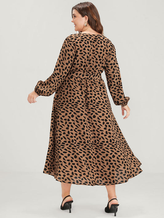 Allover Print Lantern Sleeve Split Pocket Belted Button Front Dress