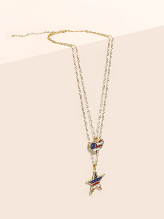 American Flag Rhinestone Pendant Necklaces Sets