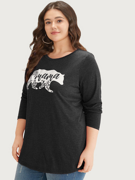 Animal & Letter Print Round Neck T-shirt