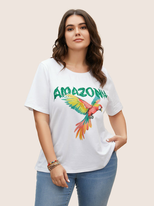 Animal Embroidered Patched Pocket Roll Sleeve T-shirt