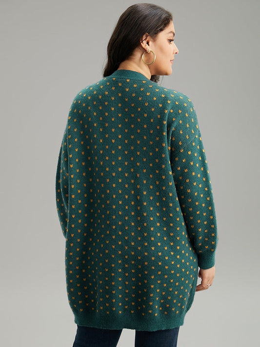 Anti-Pilling Geometric Pocket Open Front Cardigan