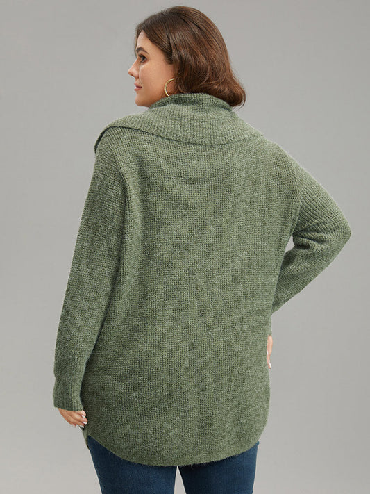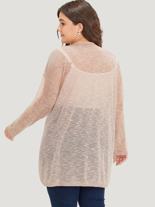 Anti-Pilling Plain Heather Mesh Open Front Cardigan