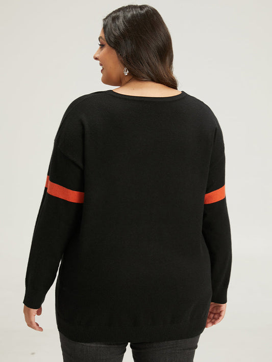 Anti-Pilling Plaid Contrast V Neck Elastic Cuffs Pullover