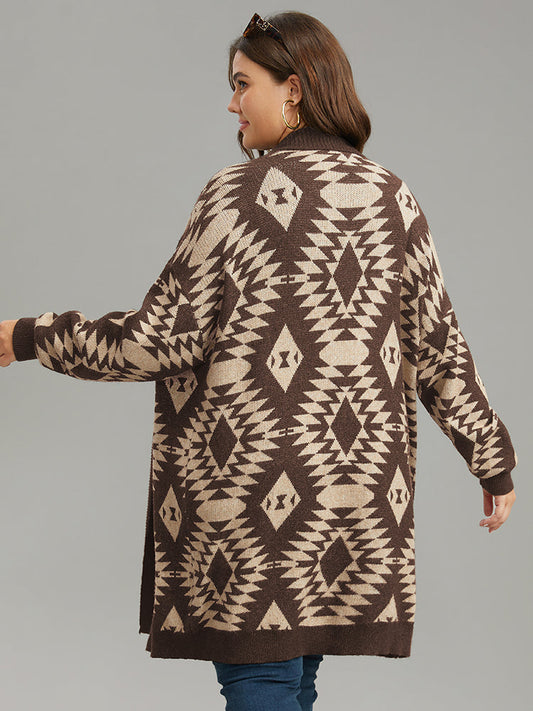 Anti-Pilling Supersoft Essentials Geo Lapel Collar Cardigan