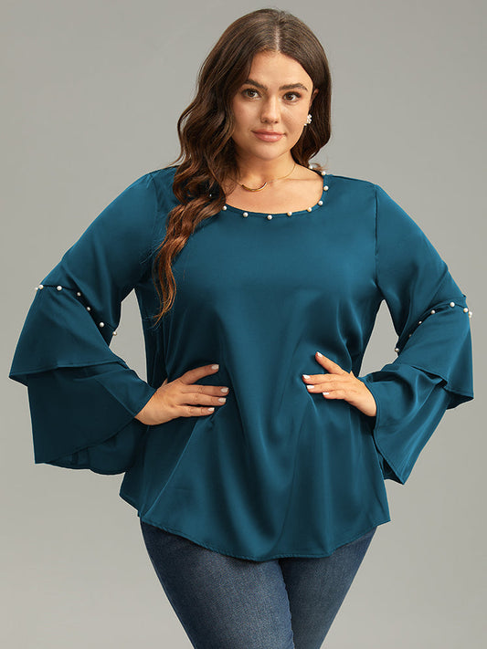 Anti-Wrinkle Pearl Beaded Ruffle Layered Sleeve Blouse